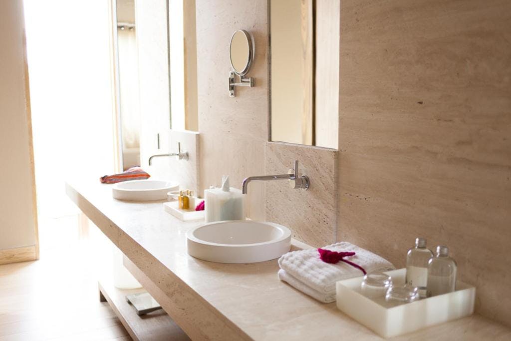 Elegante, amplia y confortable Suite rodeada de hermosos Jardines de Lavanda, Flores y Bambú, dispuesta con una Cama King Size, un recibidor que te da la bienvenida a un mundo fresco y colorido que te lleva a la terraza interna del área de descanso, donde la naturaleza brisa y fresco de la ciudad, con el calor que generan las llamas de la fogata, con solo pasar por la habitación nos rodea el segundo jardín de Bambú verde y su desayunador al aire libre, que conecta con la magia del agua del hotel. espejos y jardines externos, nos adentramos un poco más y se incorpora para tu deleite la delicadeza de un baño vestido con Mármol Travertino que combina con una bañera donde relajarte con las amenidades de Molton Brown, creando un gran conjunto con el magistral diseño que incorpora. todo el confort que buscas en un Lujoso Hotel Boutique, donde sus textiles chiapanecos te envuelven en la magia de la frescura, dentro de un ambiente climatizado con Aire Acondicionado y Calefacción, crean la magia ideal para una estadía memorable.